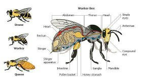The worker bees have an organ called the honeycomb, which converts the glucose in the flowers into honey. This system does not exist for the other two types of bees.